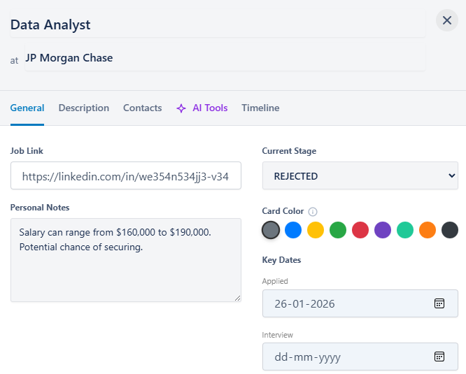 Stop wasting hours on data entry. Use GetHiredInX’s one-click capture and drag-and-drop Kanban board to streamline your workflow. With the time you save on organization, you can focus on what actually matters: acing the interview and negotiating your offer.