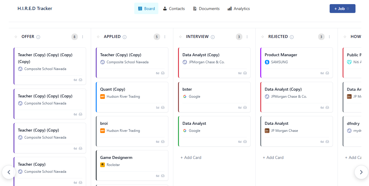 The H.I.R.E.D Tracker is your career control room. It consolidates everything in one place: